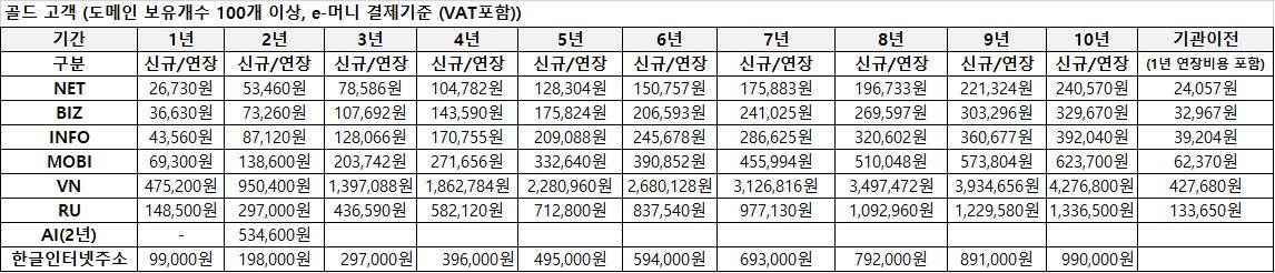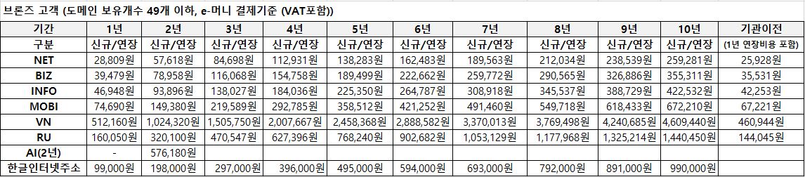 도메인 최상위 운용기관의 공급 원가 변동 및 환율 변동 건을 반영하여