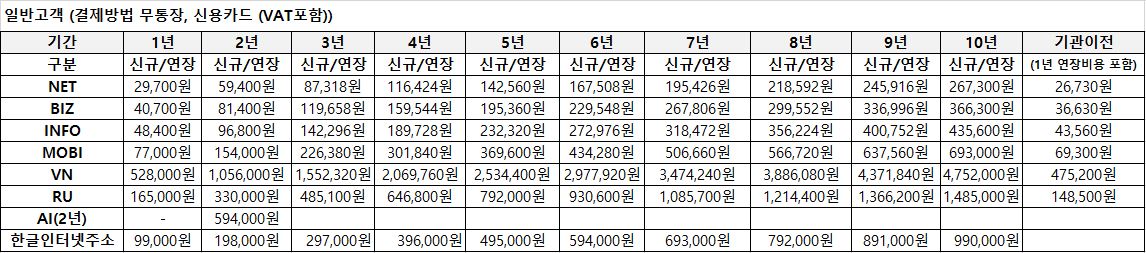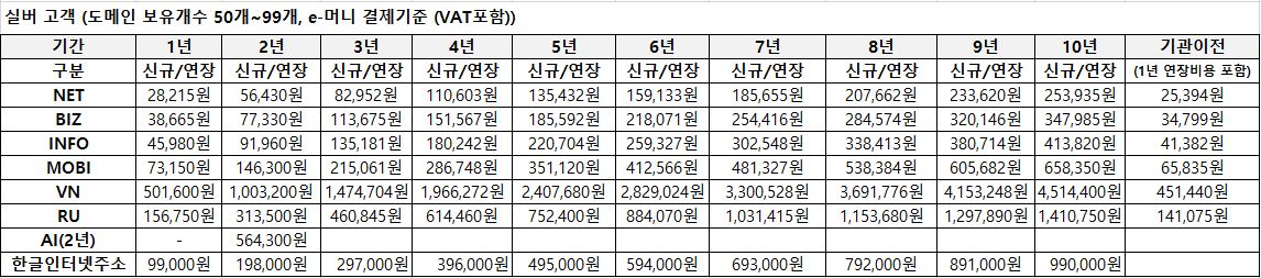 일부 도메인 공급 원가 변경 및 환율 상승에 따른 도메인 가격 인상 안내